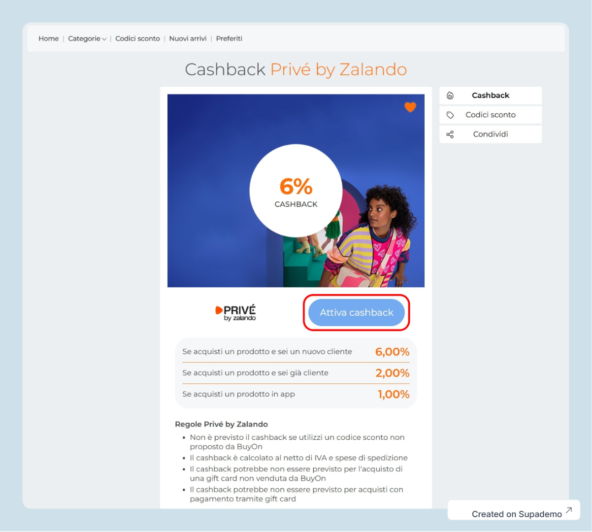 - Nella scheda dettagli del negozio selezionato, è consigliabile consultare le regole del cashback e verificare le diverse percentuali applicate alle varie categorie di acquisto.