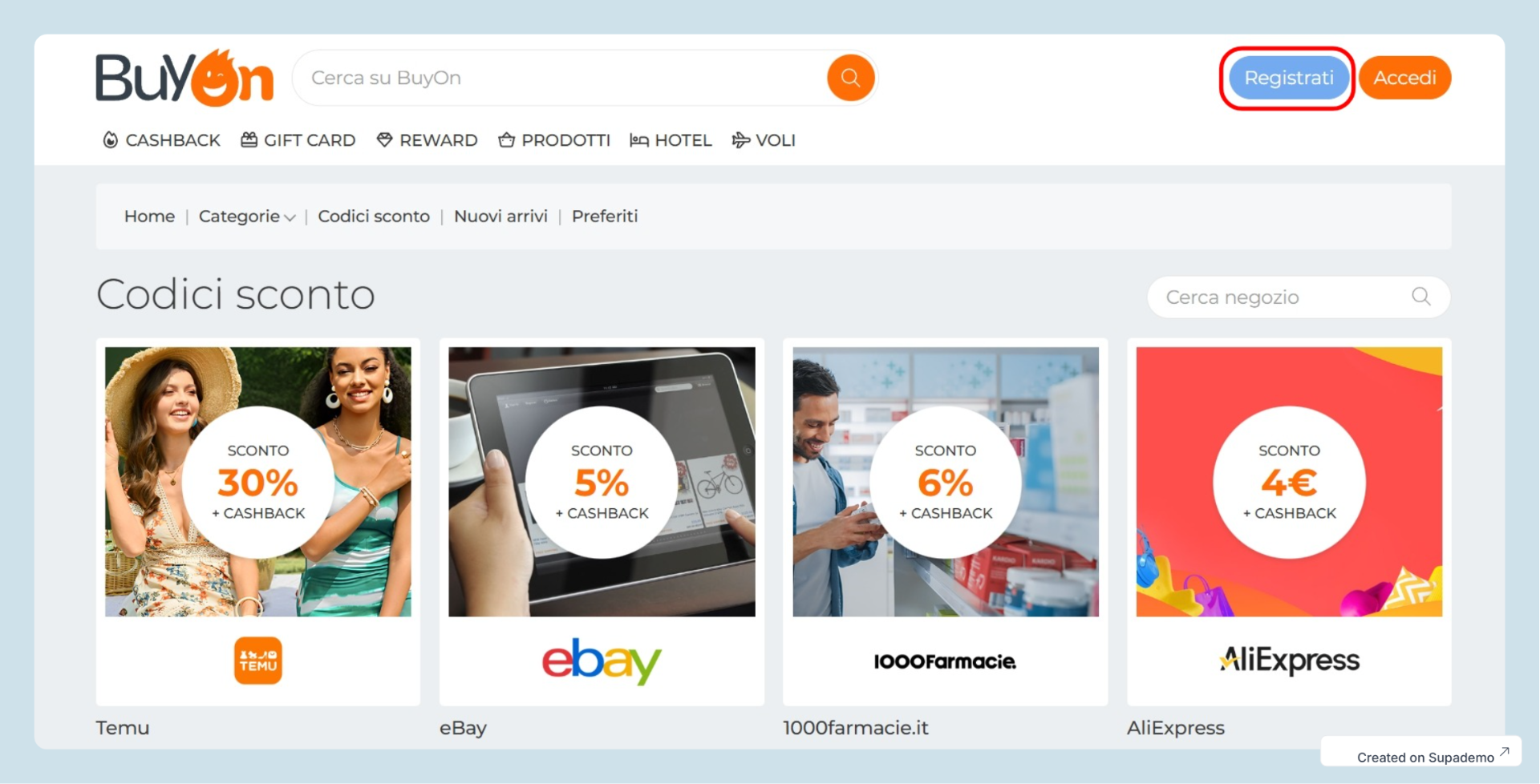 - Registrarsi gratuitamente su BuyOn