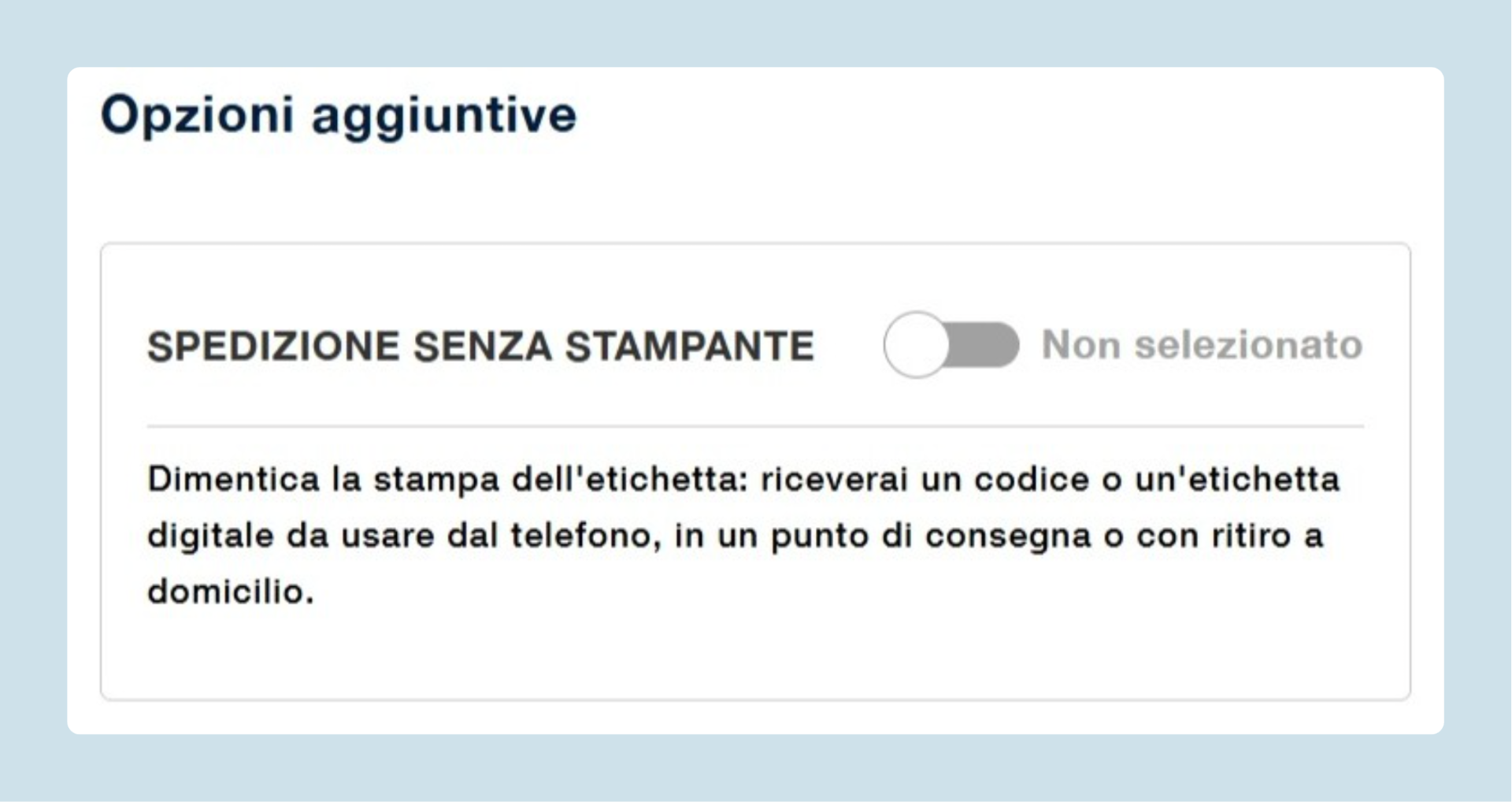 Alcuni corrieri offrono il servizio di stampa dell'etichetta direttamente al punto di consegna. È sufficiente mostrare all’operatore il codice o il QR code ricevuto tramite email e dopo la verifica dei dati, l’etichetta verrà stampata e applicata sul posto, rendendo il processo completamente privo della necessità di stampare da casa.