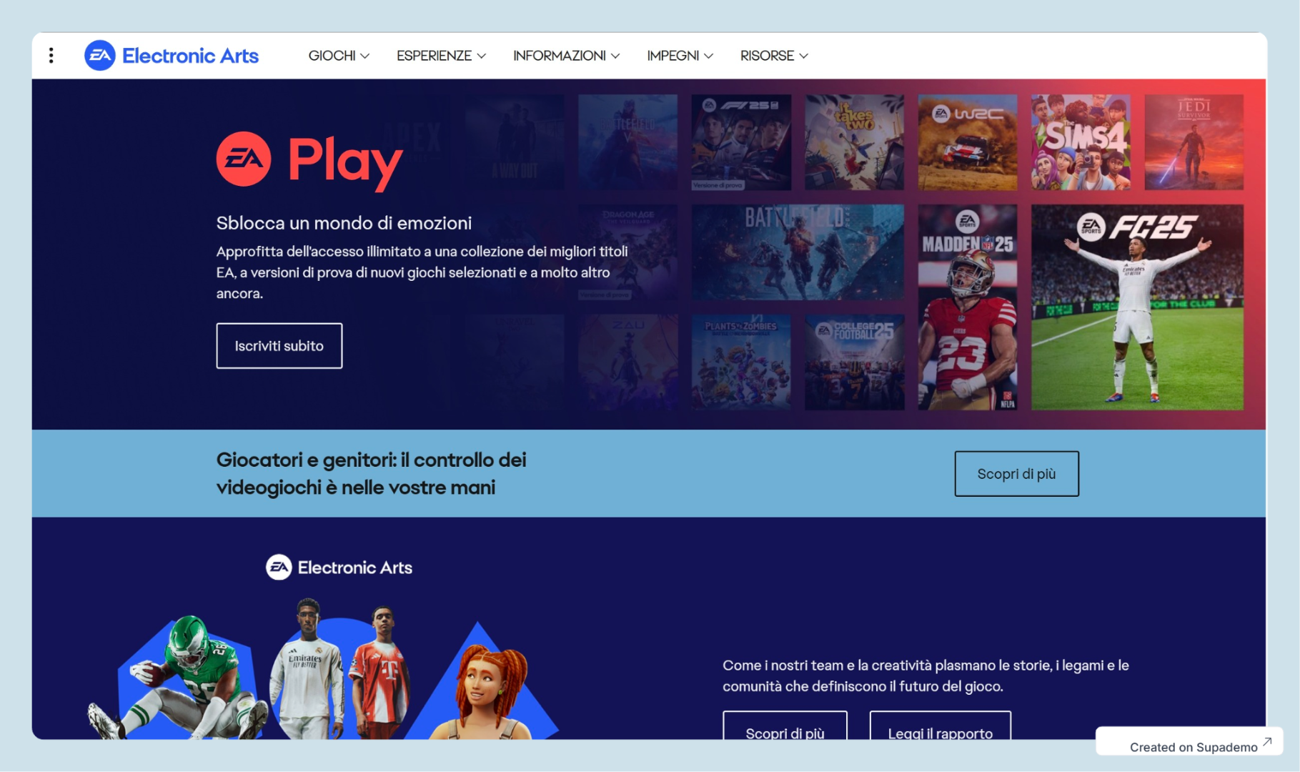 Per ulteriori informazioni o supporto, consultare la sezione Assistenza Electronic Arts, dove sono disponibili guide, FAQ e supporto dedicato.