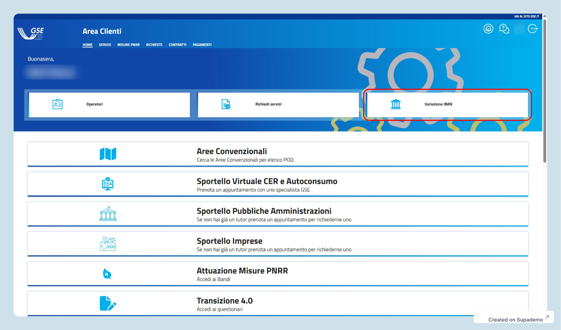 - Tornare alla pagina principale dell’Area Clienti GSE