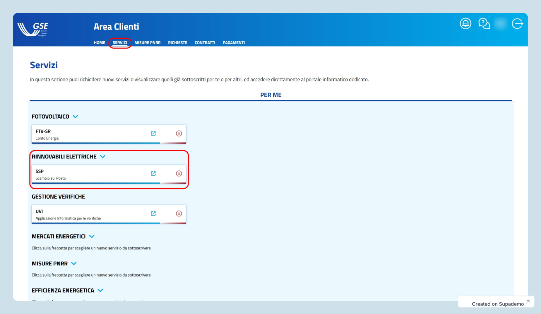 Accedere alla Sezione Scambio sul Posto (SSP)